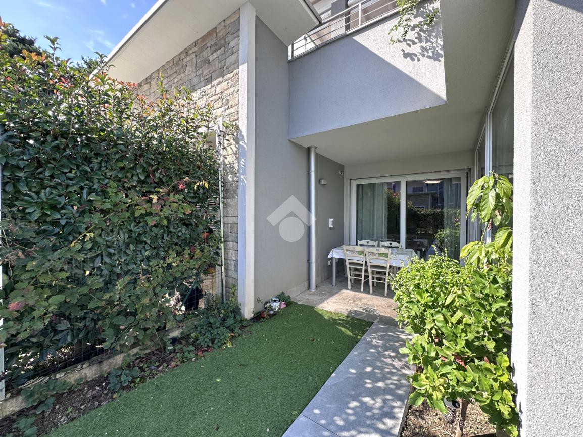 BRUGAROLO- A Brugarolo, al confine con Ronco Briantino e nelle vicinanze al centro di Merate, proponiamo in vendita un elegante trilocale al piano terra, inserito in un recente contesto residenziale edificato nel 2019 e servito da ascensore.
