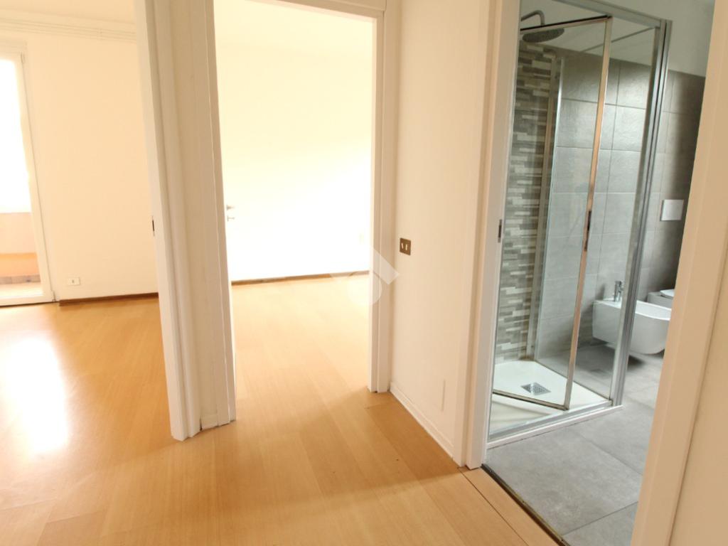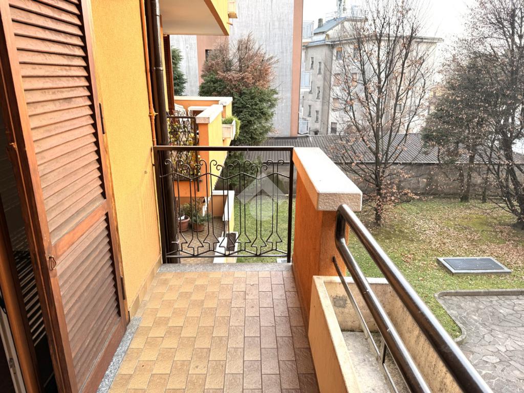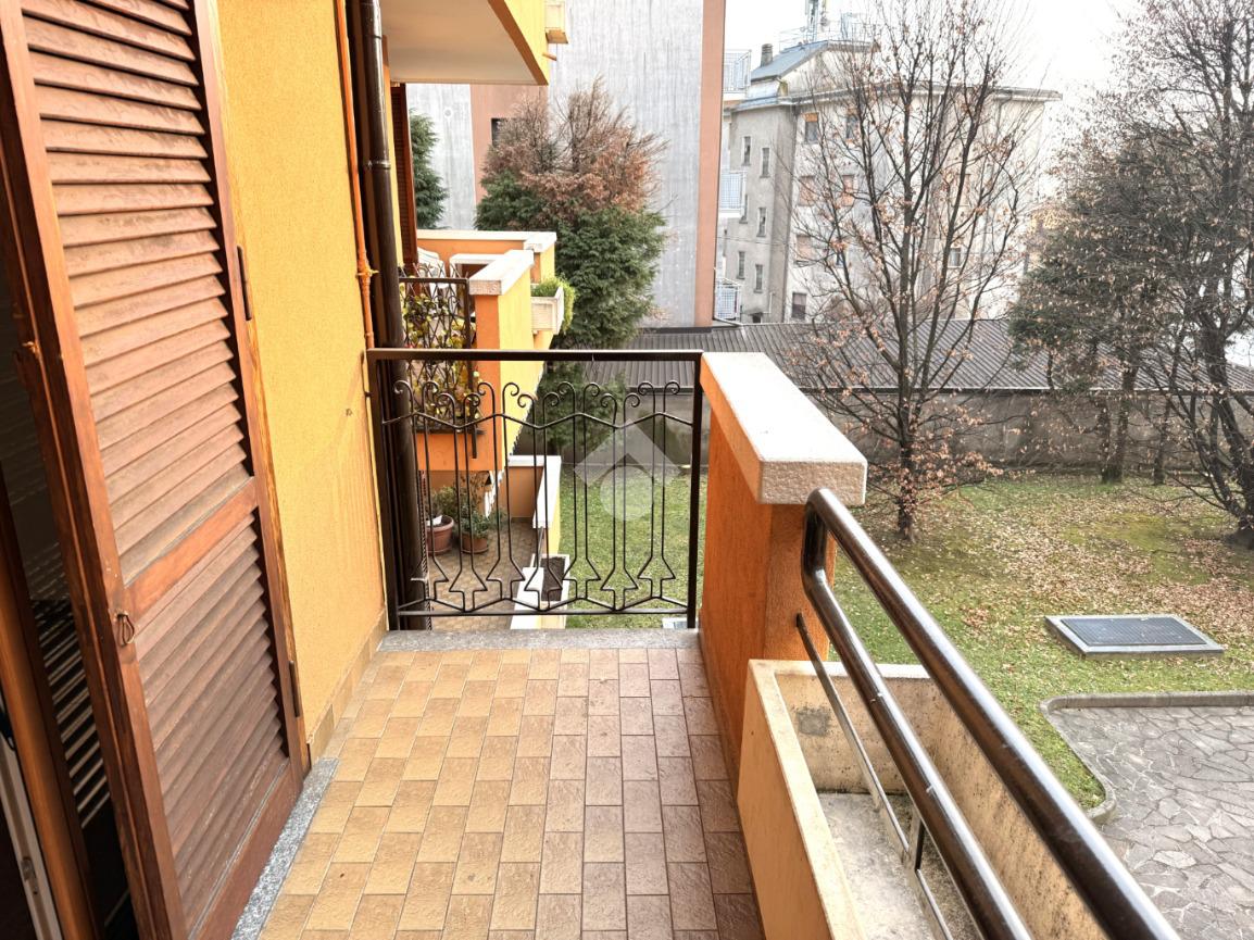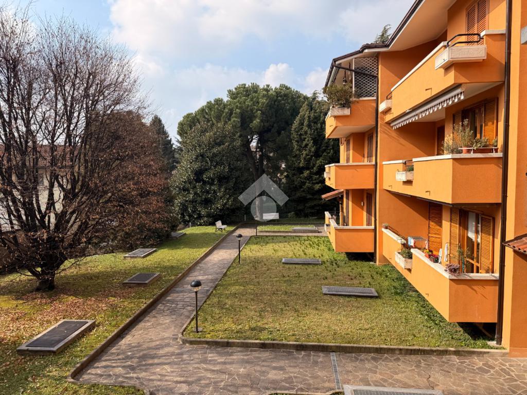 La soluzione di compone di ingresso con affaccio diretto sull'ampio soggiorno, cucinotto attualmente separato ma facilmente annettibile alla zona giorno, due camere da letto matrimoniali ed uno spazioso bagno finestrato con doccia. I due balconi donano piacevole sfogo sul bel giardino condominiale.